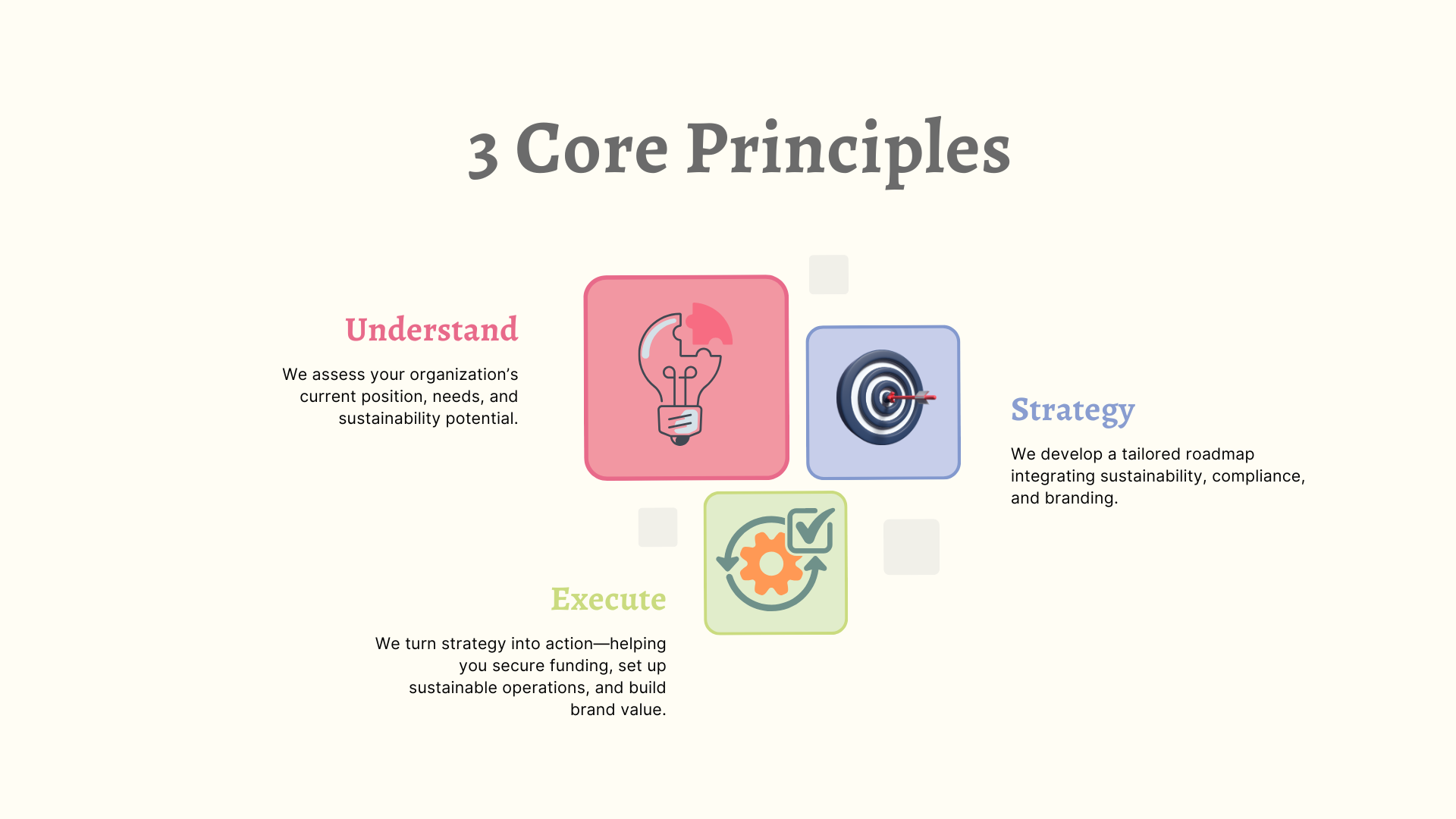 To empower organizations to integrate sustainability into their core business strategy—making it both economically viable and socially impactful.